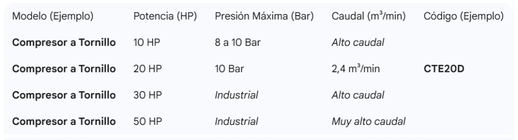 Aire de Calidad | Muchos modelos permiten la integración de secadores frigoríficos y filtros para obtener aire más seco y limpio, crucial para pintura y equipos sensibles. |
