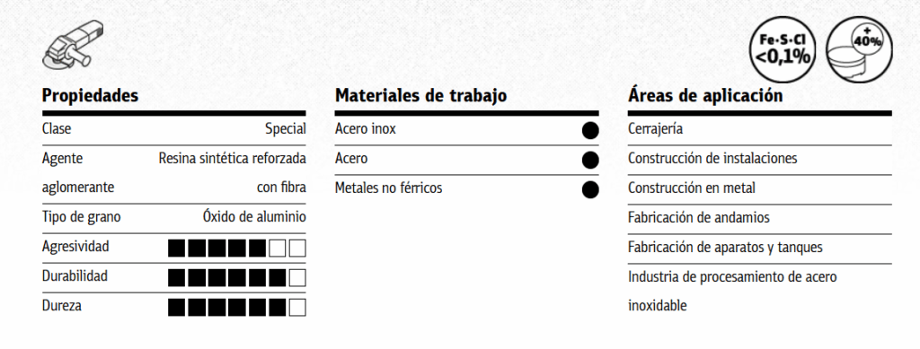 Klingspor ofrece el disco de corte Kronenflex A 980 TZ en la clase de rendimiento Special. Se trata de un producto de alto rendimiento que garantiza, en el ámbito de aplicación correspondiente, un rendimiento de corte óptimo y una excelente durabilidad. El disco de corte debe su alta agresividad al uso de materias primas de gran calidad. Las resinas y los materiales de relleno empleados están adaptados con precisión y garantizan unas características supremas con vistas a la estabilidad, el rendimiento de mecanizado y la resistencia al estallido. De esta manera, Klingspor ofrece productos de corte para todos los ámbitos. El grano abrasivo sintético, por su parte, es duro y tenaz, apenas se desgasta y muestra un comportamiento de lijado constante.