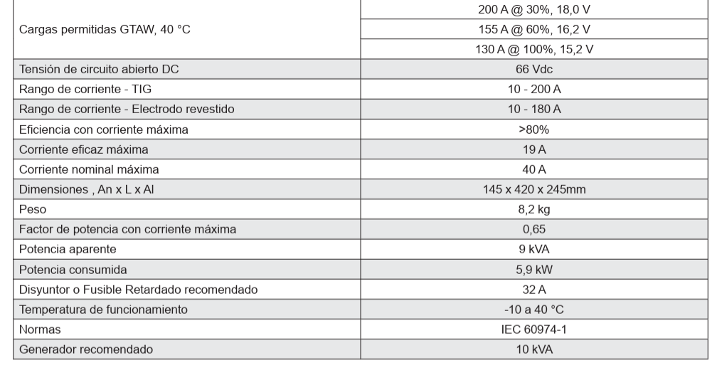 - Alta frecuencia, apertura de arco que facilita la operación para el soldador y evita la contaminación de la pieza y del tungsteno.